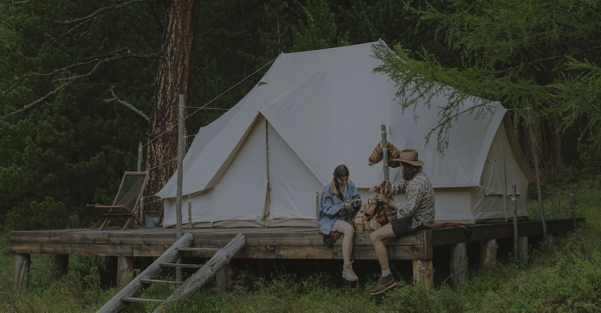 Couple camping or cabin